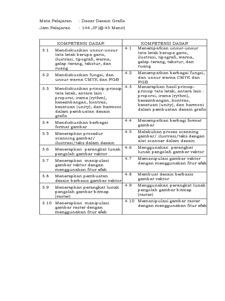 Silabus desain grafis kurikulum 2013.silabus kurikulum 2013 smk tkj c2 dasar program keahlian. Struktur kurikulum 2013 smk revisi 2017 jurusan tkj, multimedia, dan rekayasa perangkat lunak di bawah ini adalah struktur kurikulum 2013 revisi terbaru untuk beberapa paket keahlian, khususnya kompetensi keahlian yang berada di bawawah naungan bidang keahlian teknologi informasi dan komunikasi mulai dari kompetensi keahlian teknik komputer jaringan, multimedia, rekayasa perangkat lunak Rpp smk tkj kelas x, xi dan xii download. Modul dasar desain grafis kelas x kur 13 revisi 2017. Desain grafis percetakan smk kelas xi.